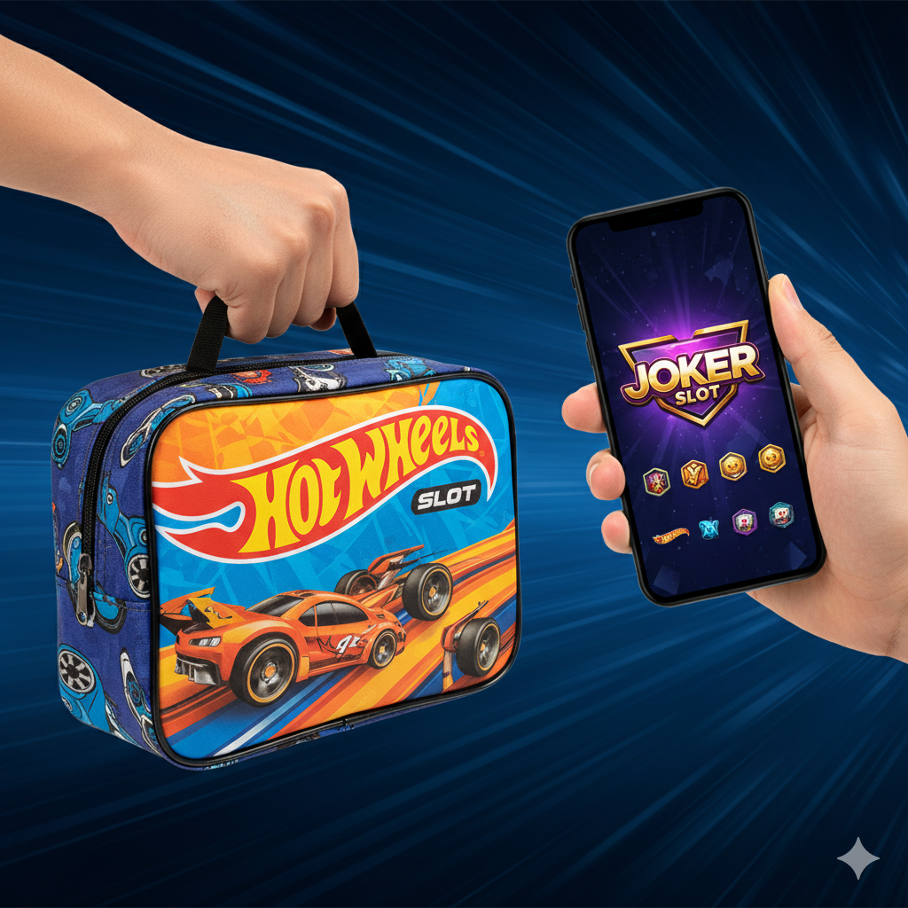 การแข่งขันด้วย ของเล่นรถแข่ง slot car แบบนี้ต้องการมากกว่าแค่ความเร็ว แต่ต้องมีฝีมือในการบังคับคันเร่งไม่ให้รถหลุดโค้ง และความแม่นยำในการเข้าพิท (Pit Stop) รางรถแข่งเหล่านี้มักมาพร้อมกับ hot wheels race case หรือกระเป๋าหิ้วที่ช่วยให้การจัดเก็บและขนย้ายสะดวกสบาย เป็นชุดแข่งที่ลงตัวสำหรับผู้ที่ต้องการความสนุกแบบพกพา ภาพที่เน้น ‘ความสะดวกในการพกพา’ (Convenience) และการเปรียบเทียบเชิงแนวคิด: ด้านซ้ายเป็นภาพระยะใกล้ของ Hot Wheels Slot Track Carrying Case สีสันสดใส ที่มีมือของผู้ใหญ่กำลังถือหูหิ้วอย่างง่ายดาย ด้านขวาเป็นภาพมืออีกข้างที่กำลังถือสมาร์ทโฟน โดยมีโลโก้ Joker Slot หรือไอคอนเกมสล็อตปรากฏบนหน้าจออย่างชัดเจน ภาพใช้พื้นหลังแบบนามธรรมที่เป็นลายเส้นความเร็ว (Speed blur) สีเข้ม เพื่อให้องค์ประกอบทั้งสองโดดเด่น สื่อถึง ‘Digital Carrying Case’ (มือถือ) และ ‘Physical Carrying Case’ (กระเป๋า Hot Wheels) ที่ให้ความสะดวกในการเข้าถึงความตื่นเต้นทั้งคู่