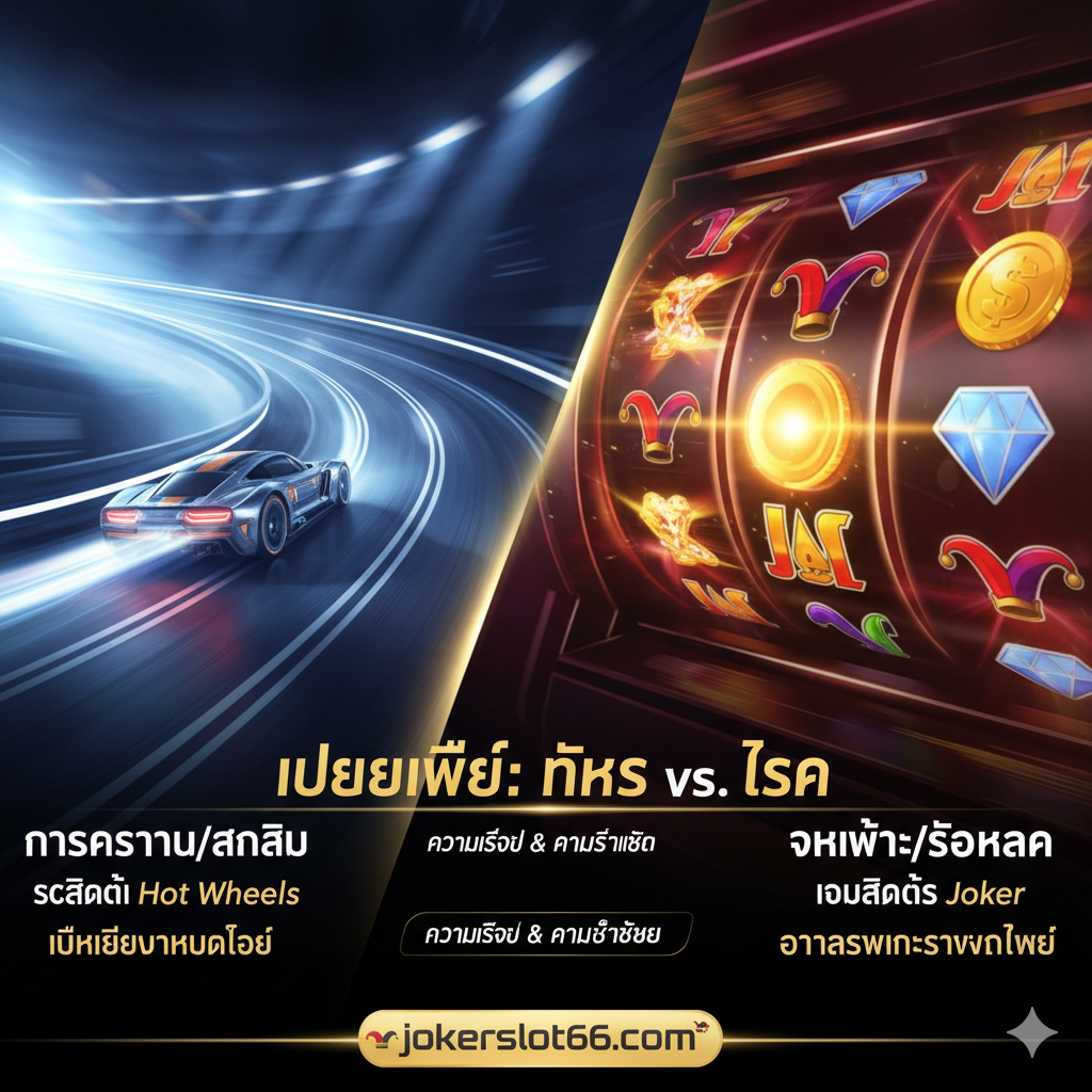 ความรู้สึกของการ “ชนะ” เมื่อคุณสามารถควบคุมรถของคุณให้เข้าเส้นชัยได้ก่อนคู่แข่งนั้นเป็นความตื่นเต้นที่น่าจดจำ ความรู้สึกนี้เองที่เปรียบได้กับความเร้าใจในการคว้าชัยชนะในเกมที่ต้องใช้จังหวะและการคาดเดา hot wheels slot car วิธีเล่น ที่ต้องใช้สมาธินั้นไม่ต่างจากการวางแผนและกำหนดเป้าหมายในการเดิมพัน เมื่อคุณมองหา hot wheels slot track review คุณจะพบว่าผู้คนให้ความสำคัญกับความตื่นเต้นของ “การแข่ง” ที่ต้องอาศัยกลยุทธ์ส่วนตัว ภาพแนวเปรียบเทียบการ ‘ควบคุม/สมาธิ’ (Control/Focus): ด้านซ้ายแสดงภาพรถ Hot Wheels Slot Car กำลังวิ่งเข้าโค้งอย่างรวดเร็วบนรางแข่ง โดยมีแสงไฟส่องเน้นที่รถอย่างชัดเจน สื่อถึงการใช้สมาธิเพื่อไม่ให้รถหลุดโค้ง ด้านขวาเป็นภาพวงล้อ (Reels) ของเกมสล็อต Joker Slot ที่กำลังหมุนอย่างรวดเร็ว (Motion Blur) และมีแสงสีทอง/แดงส่องสว่างเมื่อมีสัญลักษณ์พิเศษปรากฏขึ้น องค์ประกอบโดยรวมเน้นความรวดเร็วและความตื่นเต้นที่ต้องใช้จังหวะ (Timing) คล้ายคลึงกัน แต่รางวัลแตกต่างกันอย่างสิ้นเชิง เน้นโทนสีที่ดึงดูดสายตาเพื่อสื่อถึงความเร้าใจในการเดิมพันจริง