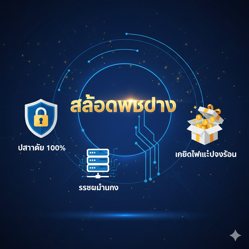 ภาพที่สื่อถึงข้อดีและความน่าเชื่อถือของ jokerslot66.com โดยมีสัญลักษณ์ ‘สล็อตเว็บตรง’ (Direct Web) ขนาดใหญ่เป็นจุดเด่น ล้อมรอบด้วยไอคอนที่สื่อถึงข้อดีอื่นๆ ที่บทความกล่าวถึง: ไอคอนรูปโล่พร้อมข้อความ ‘ปลอดภัย 100%’, ไอคอนรูปเซิร์ฟเวอร์สื่อถึง ‘ระบบมั่นคง’, และไอคอนกล่องของขวัญสื่อถึง ‘เครดิตฟรีและโปรโมชั่น’ โทนสีเน้นความน่าเชื่อถือ เช่น สีน้ำเงินเข้มและสีขาว ตัดกับสีทองเล็กน้อยเพื่อความหรูหรา